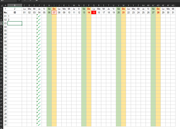 Validar si se cumplen 3 condiciones (=ID, Fecha y valor "Si"), al buscar con la función INDICE y COINCIDIR, si el resultado es verdadero, que muestre "R", de lo contrario muestre "£", con el tipo de fuente Wingdings 2