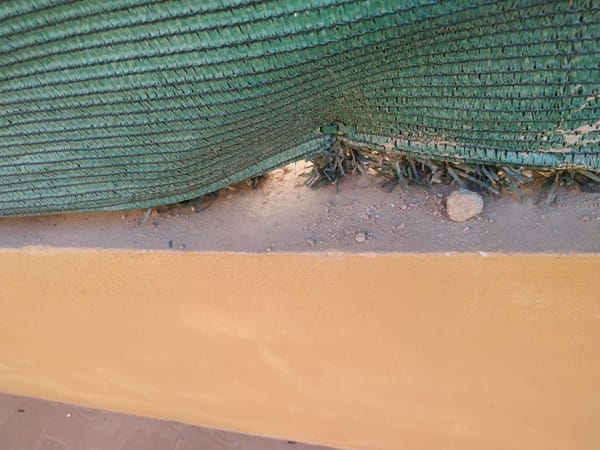 Hará como un año y medio comenzaron la obra de pisos junto a mi casa. El tema es que según veréis en las fotos han tirado hormigón, una pasta blanca que no se que es, hay grietas. La malla de ocultación que veréis en las fotos son colocadas por mi.