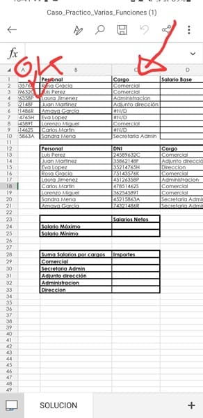 Para que de la tabla B13:D21 me ponga los DNI en la tabla superior, pero al querer que me ponga los CARGO me da error.