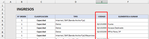 INGRESOS: es una hoja dentro del libro del formulario que tiene códigos de ingresos.