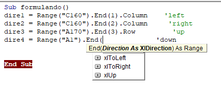 He visto en algunas respuestas que se utiliza un valor (3) en lugar de (xlup) para recorrer una columna hasta la última fila con datos, pero me pregunto si para el resto de opciones (xlleft) etc. También existen valores.