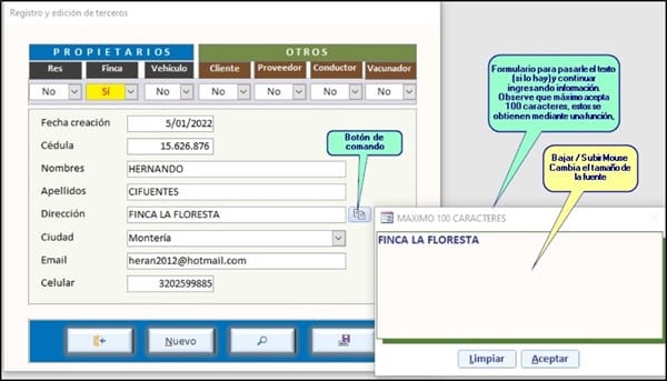 El problema es que quisiera cambiar el tamaño del texto (cosas del cliente) ¿Se podría hacer por código? He intentado hacerlo pulsando en el botón Fuente pero no solo no me hace nada sino que me cierra la base de datos.