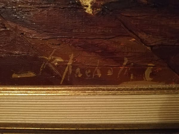 Pintura y Escultura jose m.n. el 24 ago. 22 ¿Conocéis este cuadro y su autor? Oleo sobre lienzo, Posiblemente de finales del siglo pasado. Mide 40/32 cm. ¿Cuál sería su valor? Seguir Siguiendo Dejar de seguir