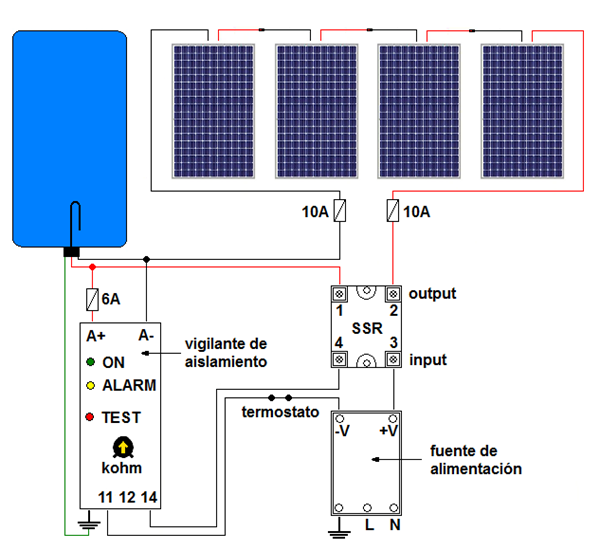Mi pregunta es la siguiente: que la resistencia esté en corriente contínua influiría en los demás elementos (estropeando termostato del depósito de inercia, ¿sensores etc)? ¿Al estar esta resistencia en CC sumergida en agua podría daría algún problema con los demás elementos que estaran enchufados a corriente alterna? ¿Alguien lo ha probado?