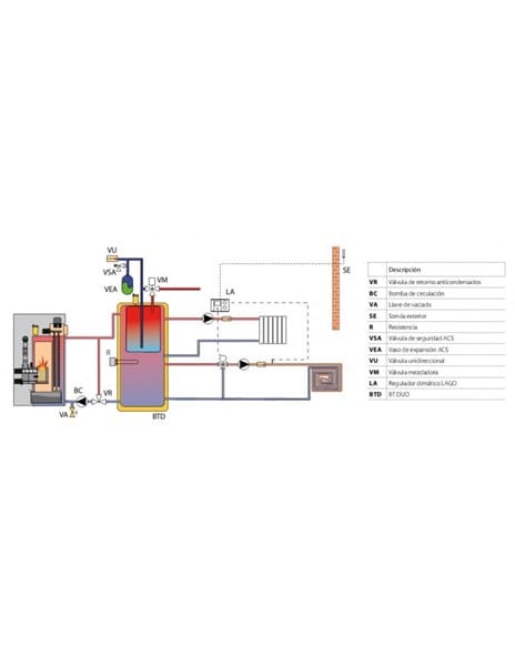Quiero hacer una instalación fotovoltaica para alimentar una resistencia en corriente contínua (protegido por un vigilante de aislamiento) que hará de apoyo para calentar un depósito de inercia de 1000 litros (de calefacción y acs tank in tank, ver en la segunda imagen la ubicación de la resistencia).