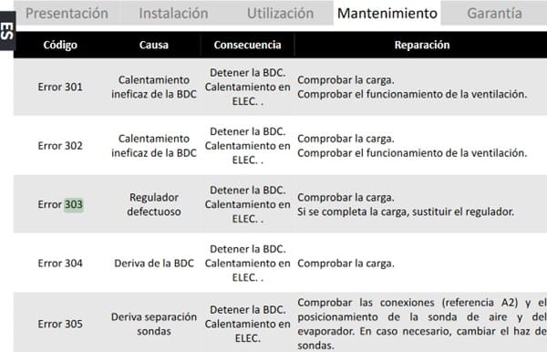Os suena a que puede ser debido error en aretermo marca thermor. Error w 30.3 ó 303 que creo que es como viene en el manual.
