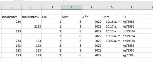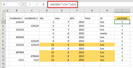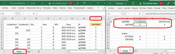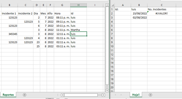 1.- El Libro quiero contar dos columnas de los números de incidentes con fecha quien genero con ID a Libro2