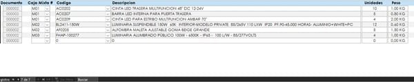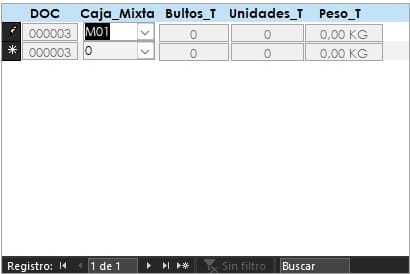 Tengo 2 subformularios (Guia_despacho_mixto y Guia_despecho_mixto_detalle) dentro de un formulario, cada subform tiene su tabla individual el primer subformulario (Guia_despacho_mixto) es para cargar despachos de cajas mixtas es decir una caja identificada con M01 (Mixto 01) puede contener 2 o más productos dentro de ella, tal como muestro a continuación: