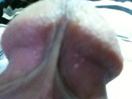 I. Hola Compañero, pienso que podría tratarse tan sólo de glándulas sebáceas inflamadas, pero no soy experto ni conozco a fondo la naturaleza de la zona para poder opinar con total propiedad, sin embargo hace pocos días estuvimos tratando unas consultas muy similares a la suya que deseaba proponerle, por favor le ruego que lea estas dos consultas que pienso podrían serle de utilidad para obtener un posible diagnóstico, siento las molestias,