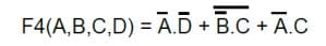 a) El circuito tiene 4 variables lógicas de entrada y presenta en F4 el resultado en base a la siguiente función lógica, la cual deberá primero minimizarla