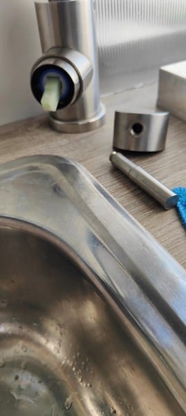 Se me ha obturador con cal y al desmontarlo solo puedo acceder a quitar la primera parte no puedo o no sé cómo se quita el embellecedor hasta llegar al cartucho