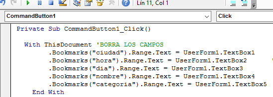 Pasar datos de un formulario de vba a un documento de word el formulario esta en word y el documento en la misma hoja.
