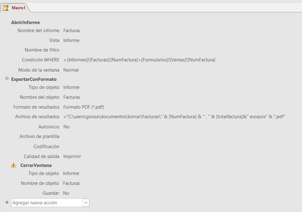 No sé programar en VBA y lo único que he conseguido leyendo y probando es imprimir todos los registros (no solo el que me interesa), con un nombre genérico (factura.pdf).
