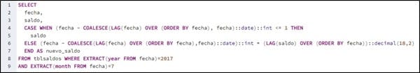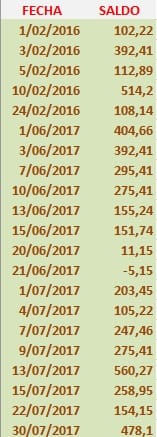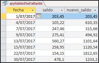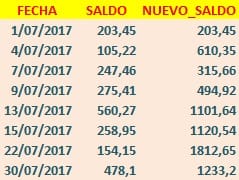 - Si la diferencia de fecha es mayor que 1 día, el nuevo saldo debe ser igual a multiplicar el número de días de diferencia por el saldo anterior. Se cuentan los días a partir del día que falta hasta la fecha más 1