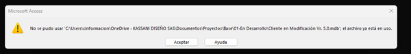 Tengo una base de datos divida en cliente y servidor, el servidor aloja todas las tablas mientras que la cliente tiene consultas, formularios, informes y las tablas vinculadas de la servidor. Estaba funcionando muy bien pero ahora al cerrar la aplicación arroja el siguiente error.