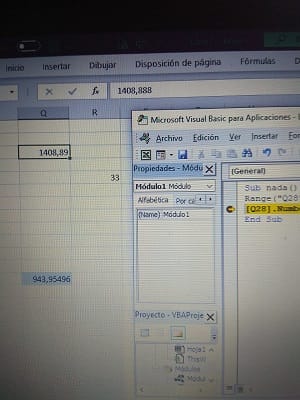 Range("Q28").Value = Range("Q18").Value - Range("R20").Value * Range("Q18").Value / 100Pues bien, el resultado que me ofrece la fórmula cuando pego su resultado en la Q28 -habiéndole indicado antes a través de un InputBox que el valor que va a ir a la R20 es 33- es 943,96 en lugar de los 943,95 reales.