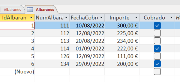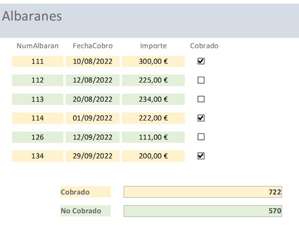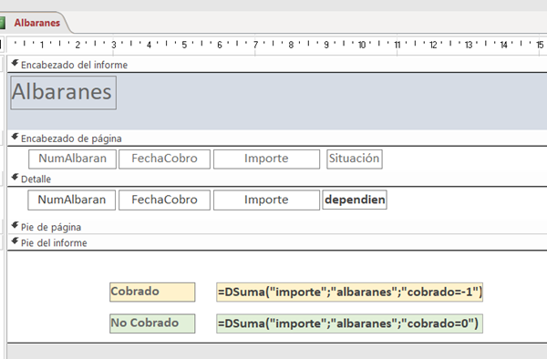 Cobrados-No Cobrados en informe de Access