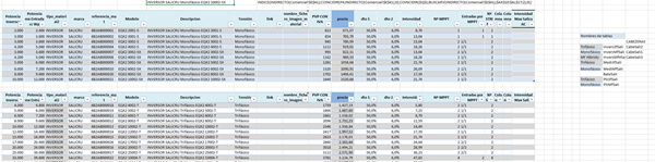 formula: INDICE(INDIRECTO(Comercial!$E$41);COINCIDIR(P4;INDIRECTO(Comercial!$E$41);0);COINCIDIR($Q$1;BUSCARV(INDIRECTO(Comercial!$E$41);$AK$10:$AL$17;2);0))