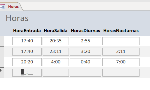 HorasDiurnas = #9:00:00 PM# - HoraEntrada