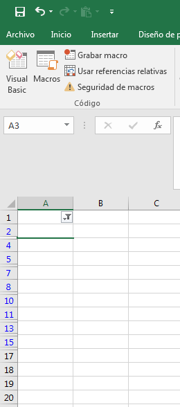 buenas tardes, tengo esta macro sencilla para bajar una celda cada que la ejecuto.. pero tengo la columna filtrada por algunas condiciones.. Y la macro no reconoce eso.. entonces si esta en la celda A2 y la ejecuto y la celda siguiente visible es la A4..la macro la posiciona en la A3 que esta oculta..hay alguna manera de que baje pero a las celdas que estan visibles? Osea se salte las celdas que estan filtradas u ocultas... Envio imagen para explicarme que la macro se posiciona en las celda oculta..