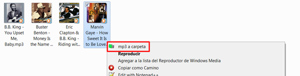 Solventada esta traba comprobé que tus códigos no eran parte del problema, ya que ahora funcionan perfectamente. Me he tomado la libertad de introducir unos mínimos cambios, para adaptarlo a mi gusto, también he creado un (.vbs) cuya función no es mas que llamar a (MP3_A_CARPETA.bat) para así evitar que la primera pantalla sea visible: