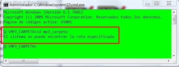 Se produce porque he operado desde la misma carpeta MP3_CARPETA, si introduzco el código desde Q:\ no da error y me lleva a MP3_CARPETA