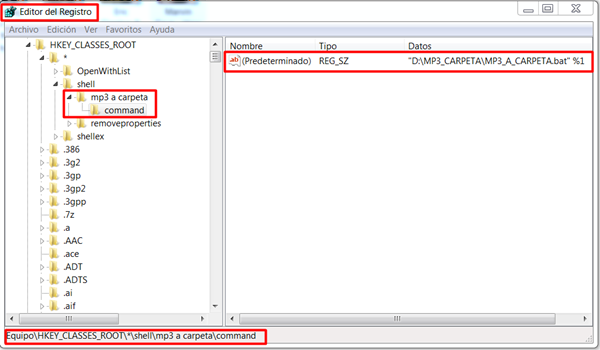 y por ultimo e creado una clave en el "Editor del Registro" para poder ejecutar el comando desde cualquier ubicación: