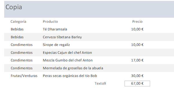Vista Preliminar Access 2010 no muestra el total de una suma
