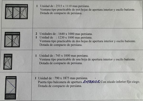 Y, por otro lado, esta “puerta” es exactamente igual que las ventanas…no hemos pedido una puerta oscilobatiente (ni lo pone en el presupuesto) sin embargo, oscila igual que las ventanas… por eso CREEMOS que tenemos una ventana en lugar de una puerta y, por eso, la imposibilidad de ponerle otra manilla por el exterior…