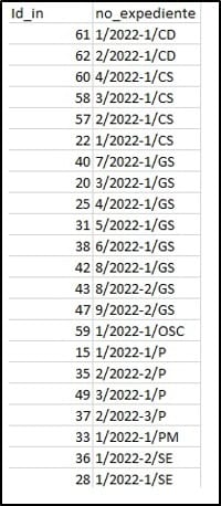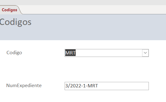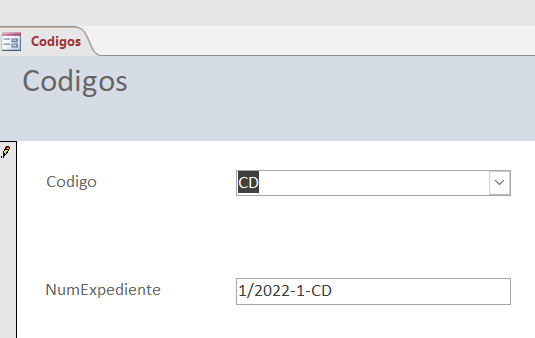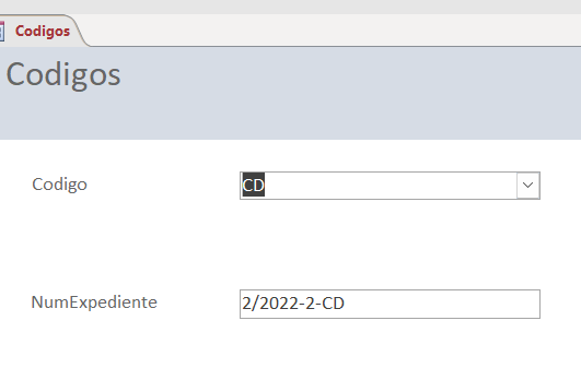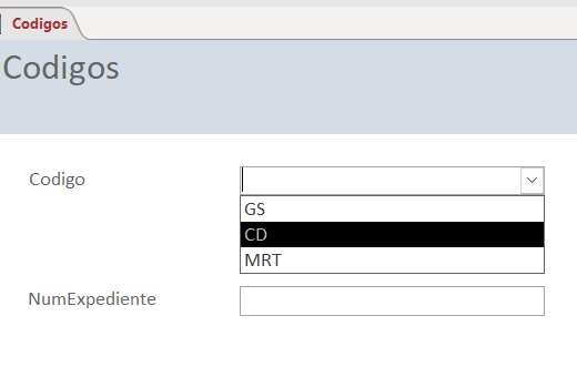 El origen del cuadro combando es una lista de valores, en este caso, "CC";"CD";"CS";"GS";"OSC";"P";"PM";"SE". Tiene como fin asignar al campo ctlExpediente el resultado de la función sgte_exp() con base en el año y el código elegido.