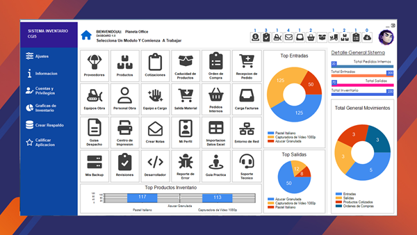 El Sistema de Control de Inventarios pertenece al área de comercial de Planeta Office y es la mejor herramienta para rentabilizar sus inventarios puesto que permite llevar un preciso control de las entradas y salidas de mercadería desde y hacia las distintas bodegas de la empresa, un manejo adecuado de los niveles de inventario y la entrega de toda la información para su correcta administración.