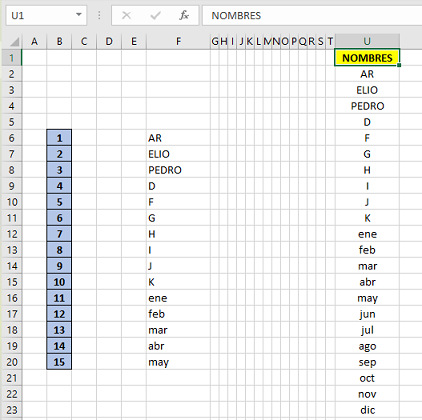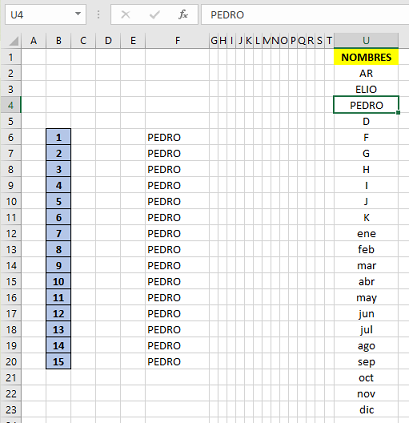 - Regresa a la hoja de excel y selecciona un valor de las celdas U2 a U23