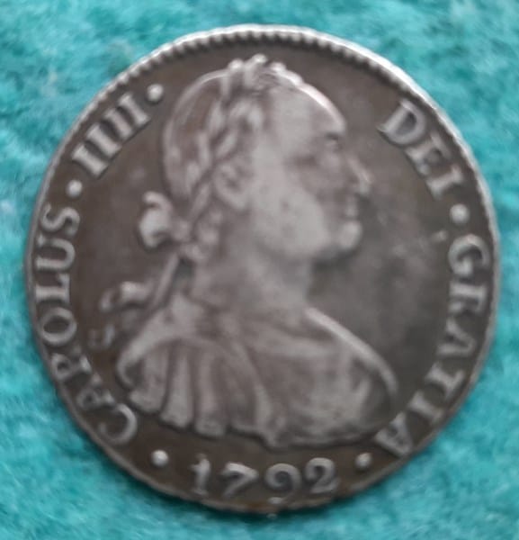 La moneda dice Hispan et Ind Rex 2 R P R y en el anverso el año 1792. Adjunto fotos. Muchas gracias.