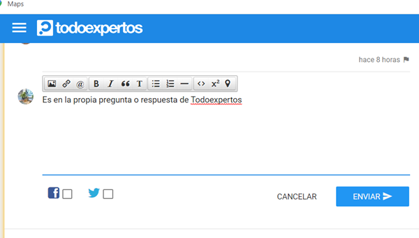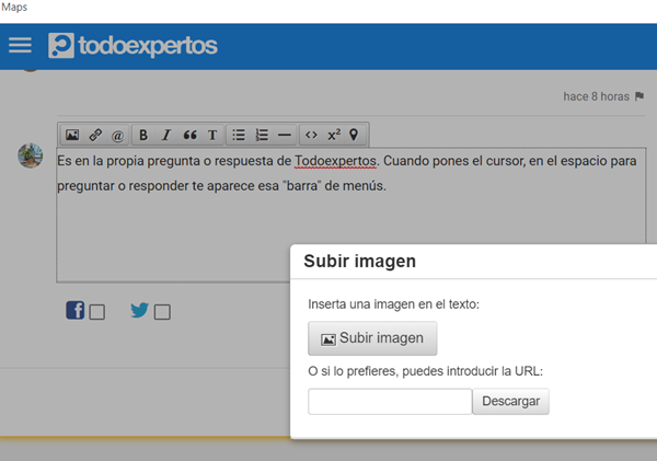 Es en la propia pregunta o respuesta de Todoexpertos. Cuando pones el cursor, en el espacio para preguntar o responder te aparece esa "barra" de menús.