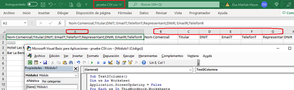 End Sub Tengo ficheros csv separados por puntos y comas ejemplo: "dato";"dato1";"dato2";"dato3"... Pero la macro no me funciona