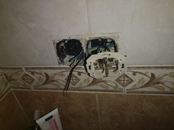 En la pared lateral tengo un enchufe y una interruptor, al interruptor le llegan 3 cables de 1.5mm y al enchufe también de 1.5mm pero ambas líneas son independientes.