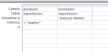 si me pudiesen indicar como hacer mediante una consulta para que se actualice el campo proveedor al valor " antonio martin " o en su caso al que corresponda, he creado una consulta pero no me hace nada