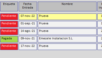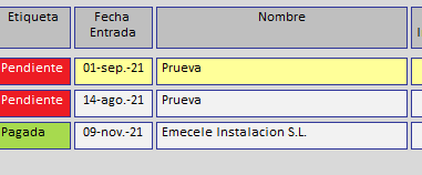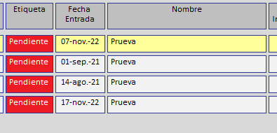 Al clic en la fecha de entrada me filtrara por el mes de la fecha pero conservando el nombre es decir me mostrara todos los de 2021 de Prueva
