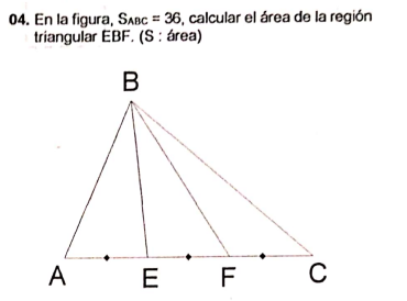 En la figuras ABC=36,Calcular el área de la región sombreada triangular EBF (S :área)
