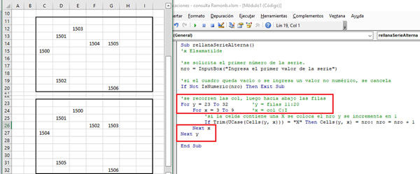 Busco la forma de rellenar un cuadro con una serie consecutiva en columnas y filas alternas.