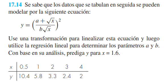Nuestra linealización ahora queda: √y = (-2.12) * (1/√x) + 0.1083.