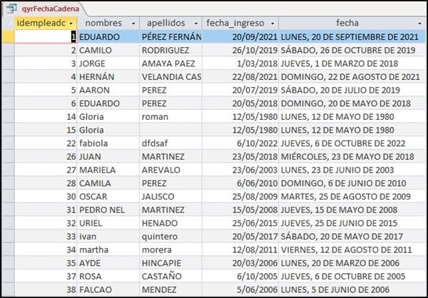 End SubObserve como a diferencia del script en PostgreSQL en Access se debe duplicar las comillas en ""DE"", el formulario se llena con un recordset desconectado para disminuir el tráfico al servidor.
