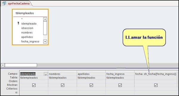 La respuesta de Enrique sirve si la tabla está vinculada para hacer una consulta o para llenar datos en un formulario mediante un recordset, no obstante, debe hacerlo llamando una función.
