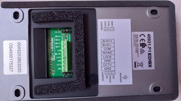 En la placa de la calle llegaran esos mismos cables que ves en el telefonillo, elige dos, por ejemplo azul y gris, conecta uno como bus+ y el otro como bus-. Y tendrás que conectar esos mismos cables en el telefonillo en OS1 y OS2.
