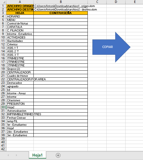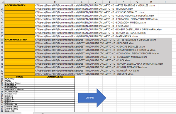 para que funcione, me pide la ubicación del libro origen, y el libro destino, y lista todas las hojas del libro; todo funciona bien.