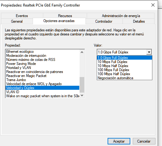 Adjunto estas capturas de pantalla, por si me podéis dar una "pista" si ese es el problema. Si así fuera, ¿lo podría solucionar con un adaptador de red por USB? (Cambiar la tarjeta, me parece complicado) y creo que algo más caro.