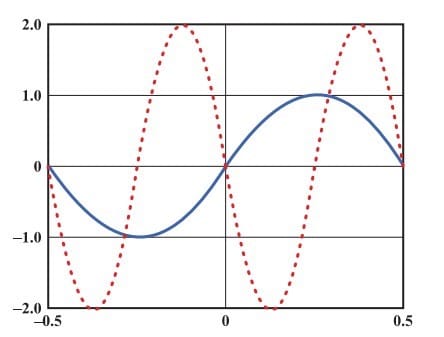 5. En la siguiente figura, la gráfica en azul representa a . ¿A qué función representa la gráfica punteada en rojo (nota: expresarlo como )?