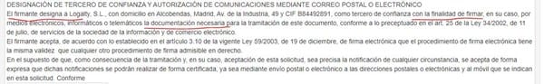 "El firmante designa a Logalty (...) como tercero de confianza con la finalidad de firmar(...)"
