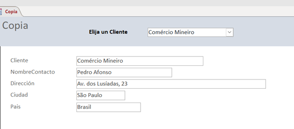 End SubEs decir, que para cada textbox busque en la tabla Clientes el valor del campo que tenga el mismo nombre que el cuadro de texto, en aquel registro en que Idcliente sea igual al que acabo de elegir en el combinado.