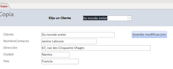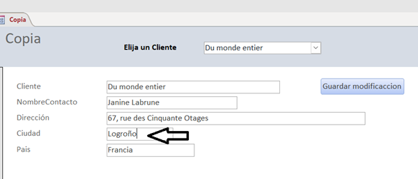 Como el formulario es independiente tengo que decirle que guarde esa modificación en la tabla. Cuando pulso Guardar modificación